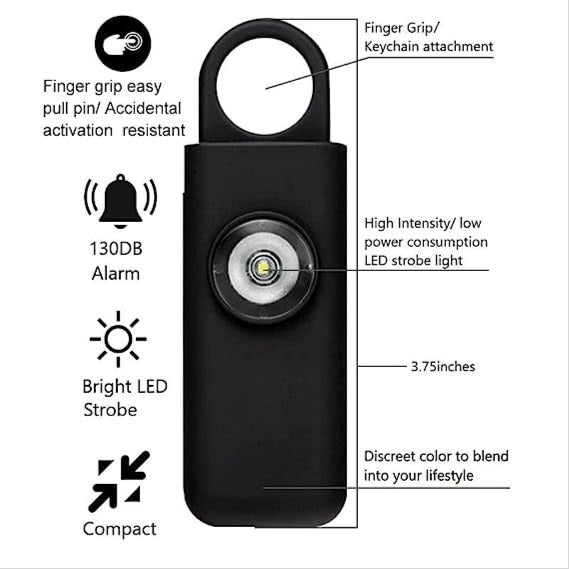 High-Volume Alarm: Emits a 130-decibel siren that can be heard up to 600 feet away, helping to deter attackers and attract attention in emergencies.