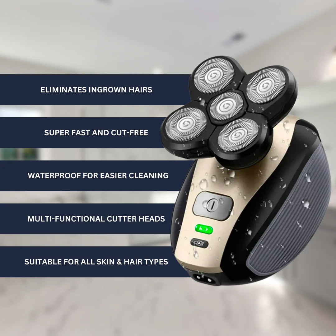 Five heads for versatile trimming and IPX7 waterproof design for wet or dry use, offering a smoother, precise shave every time.